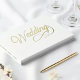 White Wedding Foil Guestbook. Die Erinnerungen Ihres besonderen Tages erleben Sie in diesem eleganten Gästebuch mit weißer Folie, das als zeitloser Sake für Paare konzipiert wurde, die raffinierte Eleganz schätzen. Dieses luxuriöse Gästebuch besticht durch ein glattes, weißes Cover mit glänzenden Foliendetails, das Ihrem Hochzeitsdekor eine Touch Glamour verleiht. Es ist mit hochwertigen Materialien gestaltet, um die herzlichen Botschaften und besten Wünsche Ihrer Gäste für die kommenden Jahre zu bewahren. Dieses Gästebuch ist perfekt für moderne und traditionelle Hochzeiten geeignet, um jedes Hochzeitsthema zu ergänzen, von klassisch und romantisch bis minimalistisch oder rustikal. Mit einer großzügigen Anzahl von Seiten bietet es den Gästen viel Platz, um ihre Gedanken, Segen und Ratschläge zu teilen und so eine schöne Bilanz des Tages zu erstellen. Die elegante Foliendetaillierung des Buches ist nicht nur optisch atemberaubend, sondern schafft auch ein reizvolles taktiles Erlebnis, das eine zusätzliche Schicht an Eleganz schafft. Dieses Gästebuch ist ideal als Herzstück Ihres Begrüßungstisches und lädt Ihre Freunde und Familie dazu ein, auf Ihrer Reise ihre Spuren verlassen. Machen Sie Ihren Hochzeitstag unvergesslich, indem Sie Erinnerungen mit diesem eleganten, weißen Gästebuch bewahren, das eine zeitlose Ergänzung zu jeder Hochzeitsfeier darstellt. Verzierung auf allen Seiten; vorne, hinten und Seite.