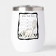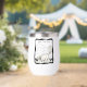 Dieser Drink-Schuster hat eine weiße winzige Katze, die auf Klaviertasten läuft, mit Gittern von schweren Musiknoten auf Noten in einem schwarzen, gewellten Rahmen mit weißen Punkten. Passen Sie Ihren Text mit der Vorlage an.