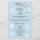 Ein kleiner weißer Drache sitzt zwischen weißen Rosen und einem weichen, hellblauen Hintergrund mit zarten Schneeflocken.