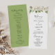 Ce programme de mariage floral à pivoines blanches d'hiver est parfait pour un mariage simple. Le design présente de belles pivoines blanches dessinées à la main et entassées dans de beaux bouquets aux bourgeons bordeaux et aux feuilles verts.