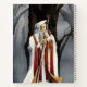 Ein Zauberer ganz in weiß, rot und gold hält ein Team mit beiden Händen mit einem sehr alten großen Eichenbaum hinter sich und einem Wald um sich herum. Hinter den Schultern des Zauberers steckt ein schwarzer Rabe.