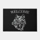White Wolf Kopf auf schwarz Fußmatte