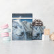 Wrapping Papier von einem schönen weißen Wolf Blick auf einen See mit schneebedeckten Bergen reflektiert in ihm und den Mond und Sterne oben. Ideal für das Umhüllen von Wolfsliebhabern Geschenke! Artwork von Michaeline McDonald, Künstlerin für Wildnis und Fantasie.