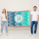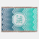 Eleganter, blauer grüner Farbverlauf und White Zigzag Zickzack. Benutzerdefiniertes Monogramm.