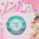 Eleganter, blauer grüner Farbverlauf und White Zigzag Zickzack. Benutzerdefiniertes Monogramm.