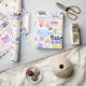 Umschlagpapier gefüllt mit positiven Bezeichnungen. Ideal zum Verpacken eines Geburtstagsgeschenks (vor allem für ein Teenager oder zwischen Mädchen) oder für den Gebrauch in der Ferienverpackung. Es ist farbenfroh und hat einen positiven Auftrieb!