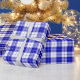 Ein Verpackungspapier mit einem königsblauen und weißen karierten Muster. Passen Sie den weißen Hintergrund unter anderen Optionen an.