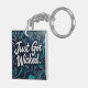 Dieser lebendige Schlüsselanhänger zeichnet sich durch eine farbenfrohe Ölfarbe aus, die mit den lustigen Worten Just Got Wicked (Nur Wicked) übersetzt wurde.