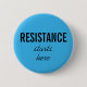 Widerstand beginnt hier, schwarzer Text auf blauem Button