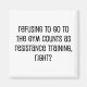 Für den Sarkasmusliebhaber in uns allen. Karo aus diesem witzigen "Weigerung, in den Fitnessraum zu gehen zählt als Widerstandstraining, richtig?" Design auf Bekleidung, Tasse, Mousepads, Knöpfen und anderen einzigartigen Geschenken.