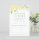 Das Brautparty ist elegant und charmant - perfekt für jede Gartenhochzeit, botanisch, rustikal, romantisch, floral, feierlich oder uralt. Seine exquisite Kombination aus sanften, sanften, gelben Rosen, Wildblumen und weiße Vegetation ist geflogen, zart und schön. Die goldenen Punkte fügen eine Touch Spaß und Launen hinzu. Dieses lustige und leichte Spiel bringt jede Menge Lachen in jedes Brautparty! Lassen Sie sich von Familie und Freunden Bilder von Braut und Bräutigam aus allen Altersgruppen senden und drucken. Nummer sie und Set sie in der Nähe dieser Spielblätter. Einfach jedem Gast ein Blatt geben (vergessen Sie nicht die Stifte) und den Wettbewerb gelassen beginnen! Sie werden erstaunt sein, wie viele Leute wirklich die Zeiten der Braut und des Bräutigams kennen. In Sekunden können Sie sehen, wie Ihr Spielblatt aussehen wird. Wählen Sie einfach diese Vorlage personalisieren und geben Sie die Namen der Braut und des Bräutigams ein.