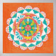 Ein weiches, pastellfarbenes Mandala-Muster in aquamariner und korallenfarbener Form. Künstler: Harriet Sussman