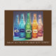 Auf dieser Postkarte finden Sie farbenfrohe Flaschen mit Etiketten, die Freude, Ruhe, Lachen, Wut und Liebe lesen; in der untersten Formulierung heißt es: "Vergiss das alles; wie wär's mit nur Kaffee?".