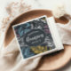 Chalkboard Hintergrund mit farbenprächtigem Vintagem Laub und ein Abzeichen im selben Stil mit all Ihren Informationen in einer Kombination aus handgeschriebenem und dekorativem Vintagen Schriftart. Karo in unserem Shop für weitere Artikel.