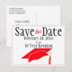 Schicken Sie dieses rote, schwarze und weiße "Save the Date" für Ihre Klasse-Wiedersehen auf dieser Vorlage Postkartenankündigung ab. Personalisieren Sie den Text in den Vorder- und Rückseite der Vorlage, oder klicken Sie auf Anpassen, um den gewünschten Schriftstil, die gewünschte Schriftgröße und Farbe auszuwählen.