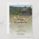 Laden Sie Ihre Verwandten zu einer lässigen Zuhause-Ansammlung mit der charmanten Wiedersehen-Einladung der bezaubernden Barnland-Familie ein. Diese rustikale und schicke Landhausfamilienfamilie Wiedersehen lädt mit einem malerischen landschaftlichen Foto einer rustikalen Holzstall mit hohen grünen Bäumen im Hintergrund und einem Feld von weißen Königin Anne's Spitzen-Wildblumen im Vordergrund ein.