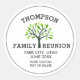 Wiedersehen-Aufkleber für eine Familie mit einem Baum, umgeben von Familienname, Wiedersehen-Position, Datum und benutzerdefinierten Text. So viele Anwendungen - Umschlag Aufkleber, Leckerei Taschen Aufkleber, Dekor und mehr.