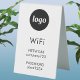 Fügen Sie einfach Ihre eigenen Logo- und WiFi-Netzwerk- und Passwort-Details für Ihre Mitarbeiter, Mitarbeiter, Kunden und Kunden hinzu. Minimalistisch und beruflich, um Ihre Marke zu fördern. Ändern Sie die Hintergrundfarbe, um sie Ihrem Branding anzupassen. Ideal für einen Laden, ein Büro, ein Geschäft, ein Restaurant, ein Bar, ein Bistro, ein Café, ein Hotel oder ein kleines Unternehmen mit kostenfreiem WLAN.