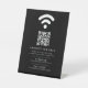 Ein kleines, weißes Schild auf schwarz, das Ihren Gästen oder Besuchern hilft, sich mit dem Platz oben für Ihr eigenes Logo zu verbinden, oder das einfache WLAN-Symbol-Logo zu verwenden und Ihren QR-Code hinzuzufügen, um Ihren Gästen eine schnelle und einfache Verbindung zu ermöglichen. Helfen Sie, Ihre Gäste informiert behalten und WiFi verbunden, mit dieser einfachen Textbeschreibung, einfach in Ihrem eigenen Netzwerk-Namen und WiFi-Access-Passcode. Ideal, um die Gästezimmer, die Hotelunterkunft, die Zuhause zu mieten, Airbnb's, Geschäfte, Cafés und Restaurants hinzuzufügen. Logo und Design von www.mylittleeden.com auf Zazzle.