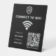 Eine einfache, fette, benutzerdefinierte schwarze Business-Scan zu Connect Wifi QR-Code-Podestal-Zeichen in einem modernen minimalistischen Stil.