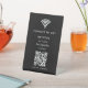 Ein modernes und einfaches schwarzes Tafelschild, das Ihren Kunden, Kunden und Gästen eine einfache Verbindung zu Ihrem WiFi-Netzwerk ermöglicht. Laden Sie Ihren QR-Code und Ihr Logo hoch und fügen Sie weitere Details wie Ihren Netzwerknamen und Ihr Passwort in weißer Schrift hinzu.