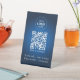 Ein modernes und einfaches schwarzes Tafelschild, das Ihren Kunden, Kunden und Gästen eine einfache Verbindung zu Ihrem WiFi-Netzwerk ermöglicht. Laden Sie Ihren QR-Code und Ihr Logo hoch und fügen Sie weitere Details wie Ihren Netzwerknamen und Ihr Passwort in weißer Schrift hinzu.