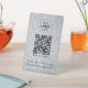 Ein modernes und einfaches schwarzes Tafelschild, das Ihren Kunden, Kunden und Gästen eine einfache Verbindung zu Ihrem WiFi-Netzwerk ermöglicht. Laden Sie Ihren QR-Code und Ihr Logo hoch und fügen Sie weitere Details wie Ihren Netzwerknamen und Ihr Passwort in weißer Schrift hinzu.