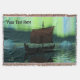 Ein leicht stilisiertes Bild eines viking-Langschiffs, das nachts unter den Nordlichter segelt, gibt es einige Eisberge; die meiste Crew schläft. Fügen Sie Ihren eigenen Text hinzu.