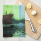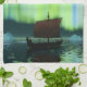 Ein leicht stilisiertes Bild eines Viking-Langschiffs, das nachts unter den Nordlichter segelt, gibt es einige Eisberge; die meiste Crew schläft. Passen Sie Ihren eigenen Text an.