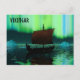 Ein leicht stilisiertes Bild eines Viking-Langschiffs, das nachts unter den Nordlichter segelt, gibt es einige Eisberge; die meiste Crew schläft. Text liest "VIKINGAR" (Wikings) wird ebenfalls angezeigt.
