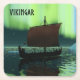 Ein leicht stilisiertes Bild eines Viking-Langschiffs, das nachts unter den Nordlichter segelt, gibt es einige Eisberge; die meiste Crew schläft. Text liest "VIKINGAR" (Wikings) wird ebenfalls angezeigt.