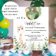 Zum 1. Geburtstag des Babys. Weiße Kulisse, niedliche kleine Babygiraffe und Eukalyptusgrün, Waldfarne und Ballons. Personalisieren Sie den Namen und die Party-Details und fügen Sie diese hinzu. Text: Wild 1 Blatt = 1 Einladung mit Druckkante bis Kante