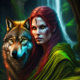 Wild Amazonian Woman and Wolf Seidenpapier
