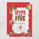 Celebrate your little one's fifth birthday with this "Young Wild and Five" invitation! Featuring adorable baby tigers and vibrant tropical flowers on a bold red background, this design is perfect for a jungle or safari-themed party. The playful typography and cheetah print accents add a touch of wild fun. Make your child's special day memorable with these unique and eye-catching invitations.