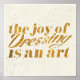Ein lustiges Zitat, das den Modemachern überall treu erscheinen wird. Entfesseln Sie Ihr Innenstilsymbol mit diesem niedlichen, goldenen Typografie-Design von Wild Apple. "Die Freude am Anziehen ist eine Kunst" in einem eleganten Schriftart mit einem gürtelhaften Rand. Dieser Fashion Forward Typografy Print ist ein Muss für Liebhaber der Mode überall! | Shoe Fetish Quotes V Light von Emily Adams