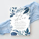Unsere Wild Azure Babydusche lädt Sie mit schicken, cremefarbenen Duschdetails ein, gerahmt von lackiertem Aquarell in eisigen Marinetönen und Himmelblau. Ein frischer Einschlag auf den botanischen Trend mit winterlichen Blätter und eleganten Kalligrafieakzenten.
