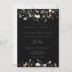 Diese wilde, schwarze, schwarze spanische Front vor der Hochzeitseinladung ist perfekt für eine rustikale Hochzeit. Das Design ist in Aquarellfarbe, Rosa, Rosa, lila, Marineblau und Weiß elegant Blume mit smaragdgrünen Blätter in einem dunklen Hintergrund. Rett Papier, indem man mehr Details auf der Rückseite der Einladung anstatt auf einer separaten Gehäusekarte angibt.