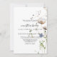 Diese wilde waldflorale Nuestra boda Hochzeitseinladung ist perfekt für eine tropische Hochzeit. Dieses Design zeichnet sich durch handbemalte Aquarelltöne in Weiß- und Blautönen aus, Blume mit grünem Blattwerk.