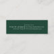 Chic botanische Visitenkarten in einer papierrettend Minigröße zeigen Ihren Namen oder Firmennamen, flankiert von einem oberen und unteren Rand von lackierten Aquarellfarben botanische Blätter in Waldgrün. Füge deine vollständigen Kontaktinformationen auf der Rückseite in Weiß auf Jägergrün hinzu. Eine einzigartige und elegante Wahl für jeden Beruf.