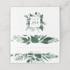 Das schicke Design der botanischen Platzkarte im Winter besticht durch einen oberen und unteren Rand des Aquarellbodens und Blätter in kräftigen Jägergrün. Platz für den Namen und die Tischnummer der Gäste. Karten rückwärts, um einen passenden botanischen Rahmen mit Ihren Initialen und Hochzeitstermin im Inneren zu zeigen. Entworfen, um unsere Hochzeitskollektion und Veranstaltungskollektion im Wilden Wald für elegante Winter- oder Frühlingshochzeiten zu ergänzen.