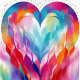 Die Aquarellmalerei mit einer Herzform, mit einem lebendigen und fließenden Design, besteht aus fließenden, bandartigen Farbschlägen, die ein Gefühl von Bewegung und Energie erzeugen. Die Farbpalette ist vielfältig, in Blau, Rosa, Rot, Orange, Gelb und lila, die zu einem harmonischen und auffälligen Effekt verschmelzen, die Aquarelltechnik in den sanften Kanten und durchsichtig Die Farbqualität verleiht dem Kunstwerk ein zartes und ätherisches Ambiente, der Hintergrund ist schlicht weiß, was dazu beiträgt, die Herzform und die lebhaften Farben zu unterstreichen. Der Gesamtstil ist modern und abstrakt, mit einem Fokus auf Farbe und Form anstatt einer realistischen Darstellung, das Gemälde hat eine helle und luftige Qualität, was es zu einem visuell ansprechenden und aufregenden Kunstwerk macht.