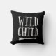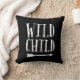 Wildes Kissen in Schwarz-Weiß mit grober handgeschriebener Typografie und einem Pfeil auf der Rückseite mit schwarz-weißen Flecken. Sieht toll aus in einem monochromen Schlafzimmer!