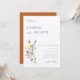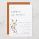 Wilde Wiesenblume, Einladung zum Hochzeitsfeiern. Farbenfrohe Aquarellbouquet mit koordinierender orangefarbener Wildblume.
