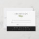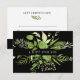 Ein elegantes botanisches Geschenkgutachten zeigt eine Single-Linie von individuellem Text (mit "Geschenk für Sie" gezeigt), gerahmt von grünen botanischen Aquarellfarben-Blätter und Ästen auf kontrastierendem schwarzen Hintergrund. Fügen Sie auf der Rückseite Ihre gewünschte Geschenkgutschrift und die Kontaktinformationen für Unternehmen hinzu, die mit einem kleinen grünen Zweig und Blätter geschmückt sind. Eine schicke und elegante Wahl für Boutiquen, Salons, Make-up-Künstler, Friseur oder jedes Geschäft.