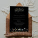 Diese wilde multicolor florale schwarze spanische Hochzeitseinladung ist perfekt für eine rustikale Hochzeit. Das Design ist in Aquarellfarbe, Rosa, Rosa, lila, Marineblau und Weiß elegant Blume mit smaragdgrünen Blätter in einem dunklen Hintergrund.