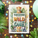 Adorable invitation safari "Wild One" avec des animaux de la jungle d'aquarelle (lion, girafe, éléphant, zèbre) avec des feuilles tropicaux. Parfait pour les fêtes de premier anniversaire ! ✨ Théodore sur le devant + blanc sur le dos pour les détails de la fête ✨ Impression de haute qualité sur les cartes premium ✨ Peut créer avec N'IMPORTE QUEL nom sur demande - envoyez-moi un message ! Idéal pour les fêtes à thème Wild One, les fêtes safari et le premier anniversaire de naissance.