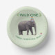 A sweet Wild One elephant design featuring a gentle elephant wearing a birthday hat on a clean, open background for a modern, minimalist look. The simplified artwork wraps smoothly around the bowl, making it a charming addition to safari, jungle, or zoo‑themed birthday celebrations. This design coordinates beautifully with the full Wild One Elephant collection. Any name shown on matching items is only an example and can be updated using the personalization tool.