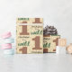 Wählen Sie ein Packpapier, um ein Safari-Geburtstagsaussehen zu ergänzen. Diese Typografie 1. Geburtstagsgeschenkpackung in braun, braun und grün mit einem Bräunungsmuster-Hintergrund zieht alles zusammen für Ihren wilden Tag.
