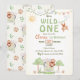 Get ready for a roaring adventure! Celebrate your little explorer's first birthday with this adorable "Wild One" safari invitation. Featuring charming watercolor jungle animals, a cute safari truck, and a whimsical monkey, this design captures the fun of the wild. The back of the card is decorated with a matching animal paw print pattern. Easily customize the name, date, and party details to invite family and friends to this unforgettable celebration!
