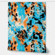 Ein nahtloses Muster mit blauen, orangen und schwarzen Tierabzügen. Das Design vereint das kühne und exotische Wesen von Tiermustern mit lebhaften Farben und auffallenden Kontrasten